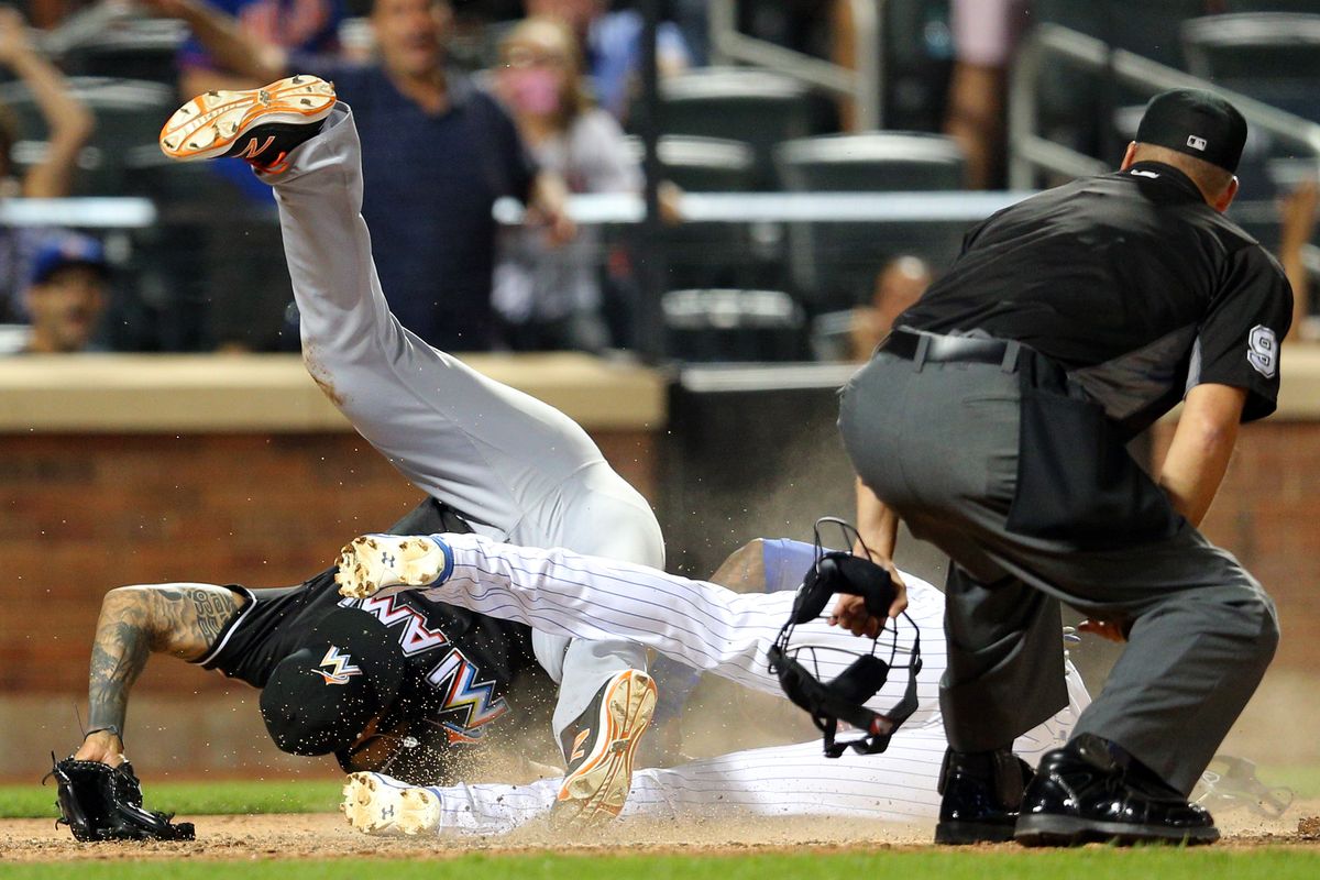 The good feeling didn't last long as a wild, wild pitch brought home a hustling Jose Reyes in the bottom half of the frame. With Reyes on third and only one out, A.J. Ramos unleashed an errand ball and collided with the speedster at home. Reyes scored and the game was tied. Both players remained in the game.