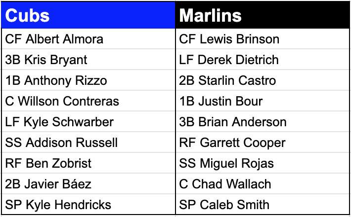 Making his Marlins debut, Caleb Smith escaped a stressful first inning without allowing a run. Overall, he performed well against one of the National League’s deepest lineups (Javy Báez batting eighth!!!). The lone blemish: a Kris Bryant solo homer in the third.
