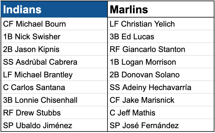The Indians came into town hot, winners of eight straight games. Facing off against veteran right-hander Ubaldo Jiménez, José wouldn’t be able to count on having a comfortable lead—Jiménez had gone eight scoreless innings the previous week. And despite his natural magnetism, it’s difficult to motivate locals to show up for an interleague matchup, especially when the Fish already declared themselves non-contenders (NL-worst 42-65 record).