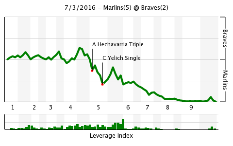 Marlins 5, Braves 2—July 3, 2016