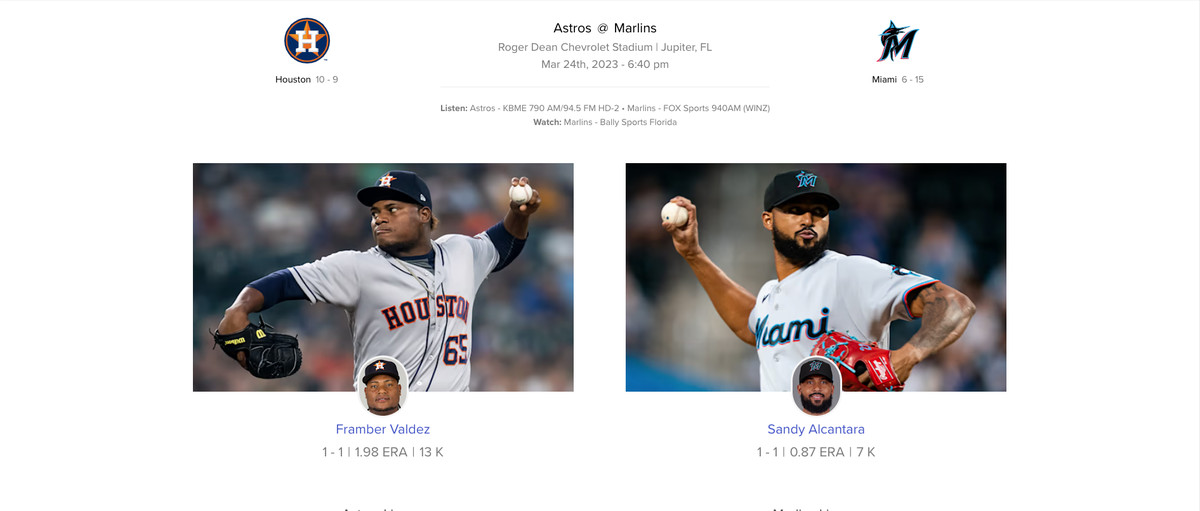 Tomorrow, the Marlins have a scheduled off day. They return to action on Friday as the Houston Astros come to Jupiter for a night game (6:40 pm). It’ll be Framber Valdez v. Sandy Alcantara.