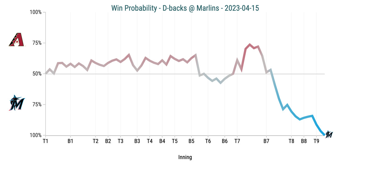 This time around, the Marlins gave the ball to Tanner Scott to close it out in the ninth inning. Scott struck out Pavin Smith, Gabriel Moreno grounded out, and Jake McCarthy flew out to Bryan De La Cruz to end it.