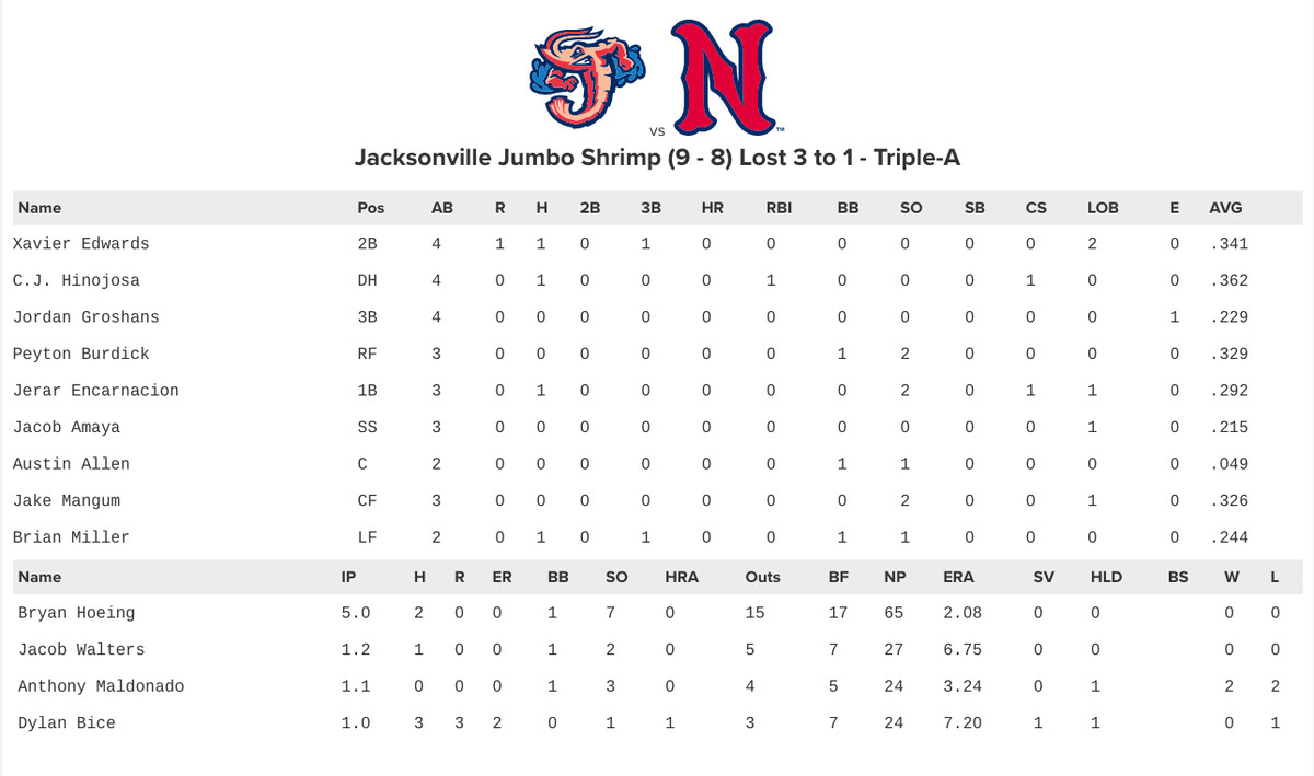 Infielder C.J. Hinojosa has also found early success this season. On a 1-2 count, Hinojosa broke the ice and gave the Jumbo Shrimp a 1-0 lead. He’s slashing .362/.387/.690/1.077 through 13 games played, adding to the possibility that he’ll debut in the majors this season.