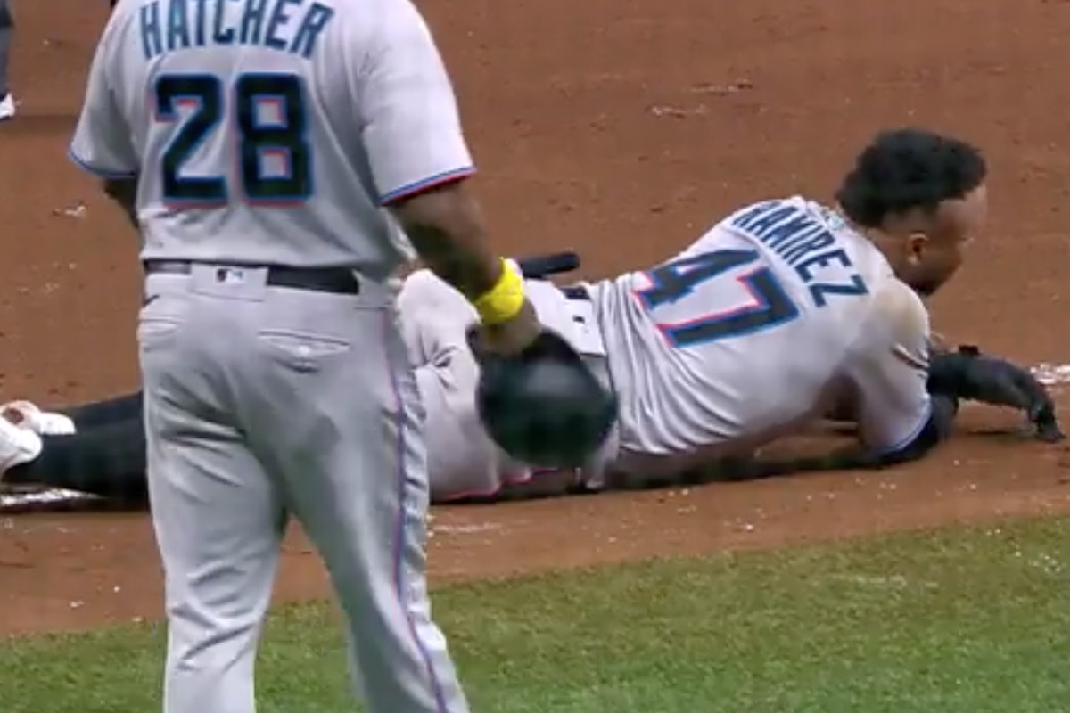 Even with the Marlins up 5-0 in the top of the fifth inning on Saturday night, no lead feels safe against the mighty Rays. Left fielder Harold Ramirez smelled a possible infield hit when he chopped the ball to the left side of the infield, so he busted it down the line at max effort.